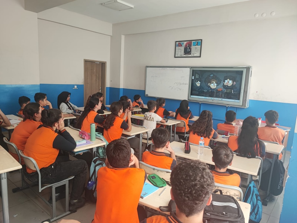 Öğrencilere insan hakları ,demokrasi ve ortak sorumluluk bilincini güçlendirmesi amacıyla önce öğrencilerimize Kudüs ve Gazze ile ilgili sunum ve Gazzede Doğsaydım adlı video izlettirildi.